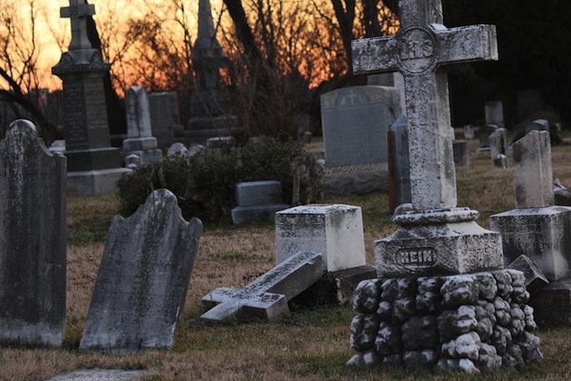 Minimal upkeep takes its toll. Every stone in Holy Rood has the scars to prove that the lawn crew is in a hurry to get done, and when weed-trees are cut and hauled away, the trucks crush fallen tombstones under their wheels. The caretaker’s house was torn down long ago, and vandals have a free hand.