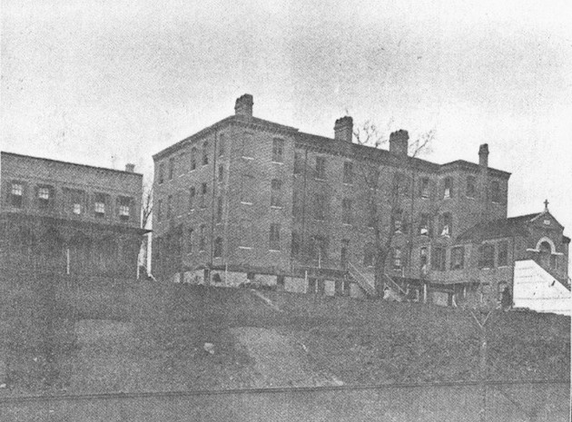 The House of the Good Shepherd, seen from Reservoir Road, circa 1898. The building at the left, which was used by the institution as a laundry, is “Burleith”, which had served as the National Colored Home during the Civil War. (Senate Report on Charities, 1898)
