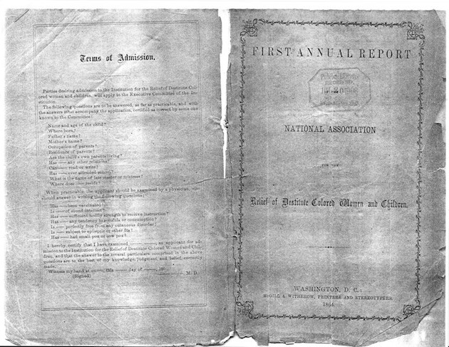 First Annual Report of the National Association for the Relief of Destitute Colored Women and Children, 1864 (Washingtoniana, Martin Luther King Library)