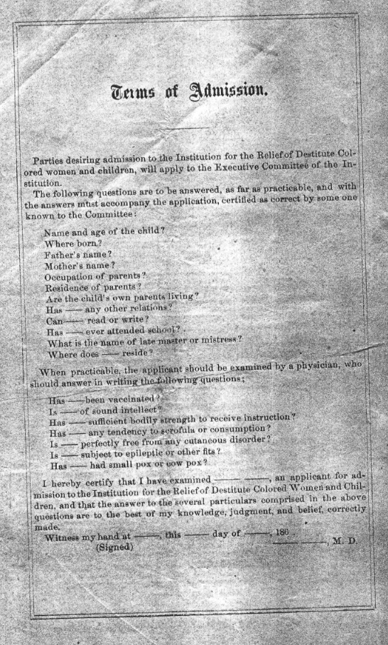 (Annual Report of the National Association for the Relief of Destitute Colored Women and Children, 1865 (published 1866); Evening Star, January 15, 1868; Sixth Annual Report of the National Association for the Relief of Destitute Colored Women and Children, 1869; Report of the Joint Select Committee to Investigate Charities and Reformatory Institutions in the District of Columbia, 1898; Montgomery, Winfield S., Fifty Years, National Association for the Relief of Destitute Colored Women and Children, 1914)