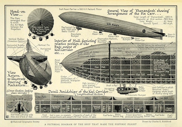 Diagram of the Navy Dirigible “Shenandoah”, Charles Riddiford, 1925