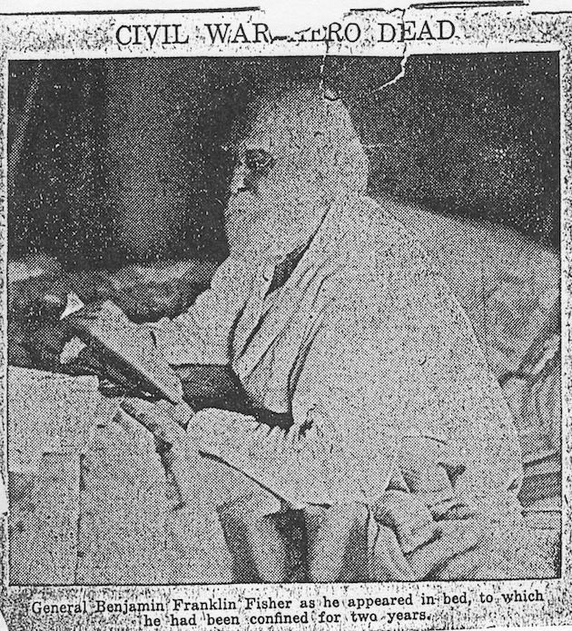 Gen. Benjamin F. Fisher Dead––Last Survivor of Band Which Escaped From Libby Prison.––Philadelphia, Sept. 10.––Gen. Benjamin Franklin Fisher, who was chief signal officer of the United States army during the civil war, died yesterday on his farm overlooking Washington’s headquarters at Valley Forge. He was 81 years old and had a picturesque career. He was a lawyer, and after the war became prominent in financial circles.