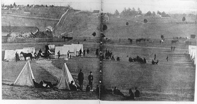 Back Street in 1861; the photographer may have been standing in what is now the 3800 block of Calvert Street, looking south. The cemetery is at the upper left, separated from Back Street by a sunlit fence.