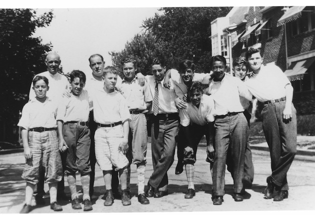 The gang at Hall Place, circa 1928: In front, “Heavy” Robinson, Tommy Quinn, Billy Freeman, Johnny Ballinger, Clayton Snyder, Freddy Brault, Larry Duvall, Ken Murayama, Toddy Lyddane, and Buck Eby; in back, Eugene T. Lyddane and Louis Freeman.
