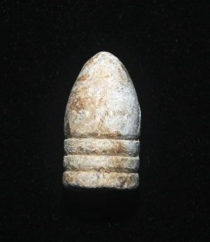 Minie Ball, Caliber .58. This Minié ball, standard ammunition for the army in the Civil War, was probably dropped by a Union soldier on duty at the Signal Camp of Instruction, a training facility for the newly-founded Signal Corps, and a part of a network of signal stations intended to give Washington timely warning of any Confederate threat. While it has always been clear that its northern end was the signal station atop Red Hill (where the Russian Embassy is today), this find, unearthed during backyard excavations on the west side of Tunlaw Road, suggests that the Signal Camp is likely to have extended to a point well south of what is now Benton Street.