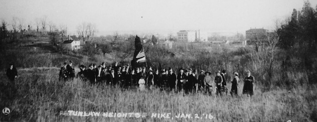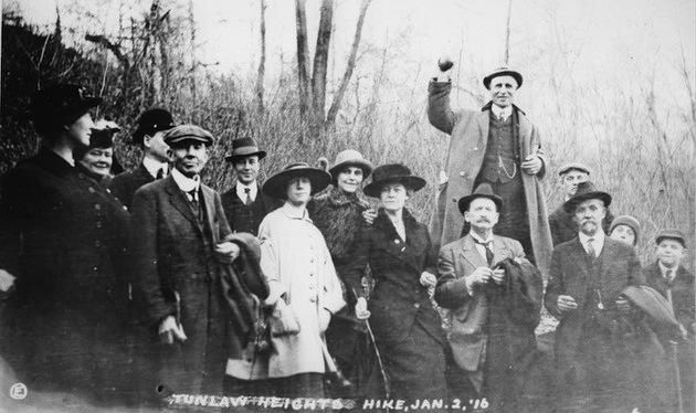 In 1907 the tract was re-subdivided as Cathedral Highlands. Nonetheless, the older name appears to have been remembered as late as 1916, when a group of “Wanderlusters” on an organized walk on the outskirts of Washington posed for their picture in the late afternoon light. Although the revised inscription on the photographs may suggest uncertainty, their destination was Tunlaw Heights.