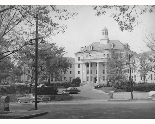 Mount Alto Hospital, 1965; just to the right of the Carillon House, at 2500 Wisconsin Avenue, the old Hunt house can be seen, which had been moved from its former location at the crest of the hill. (Archive of the U.S. Naval Observatory)